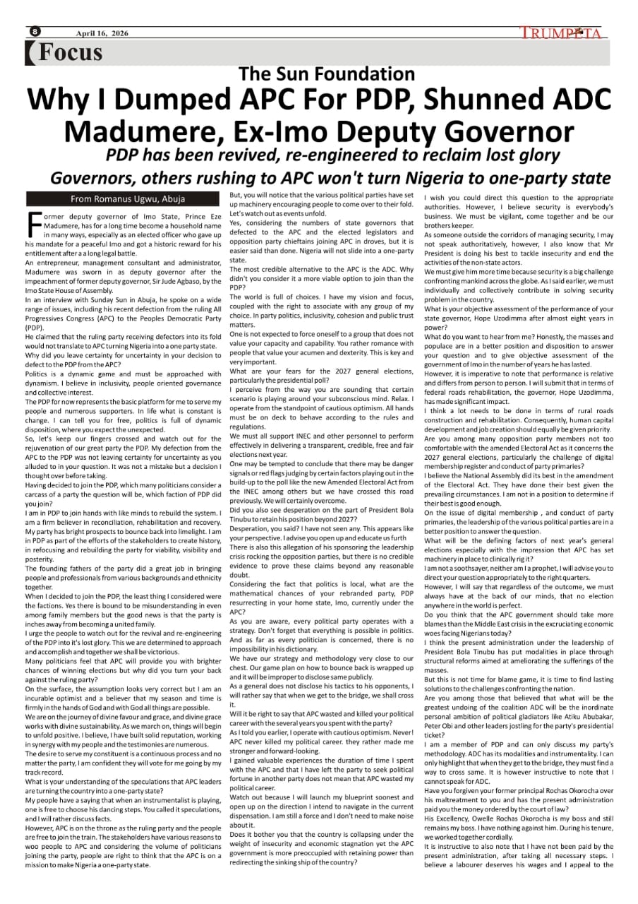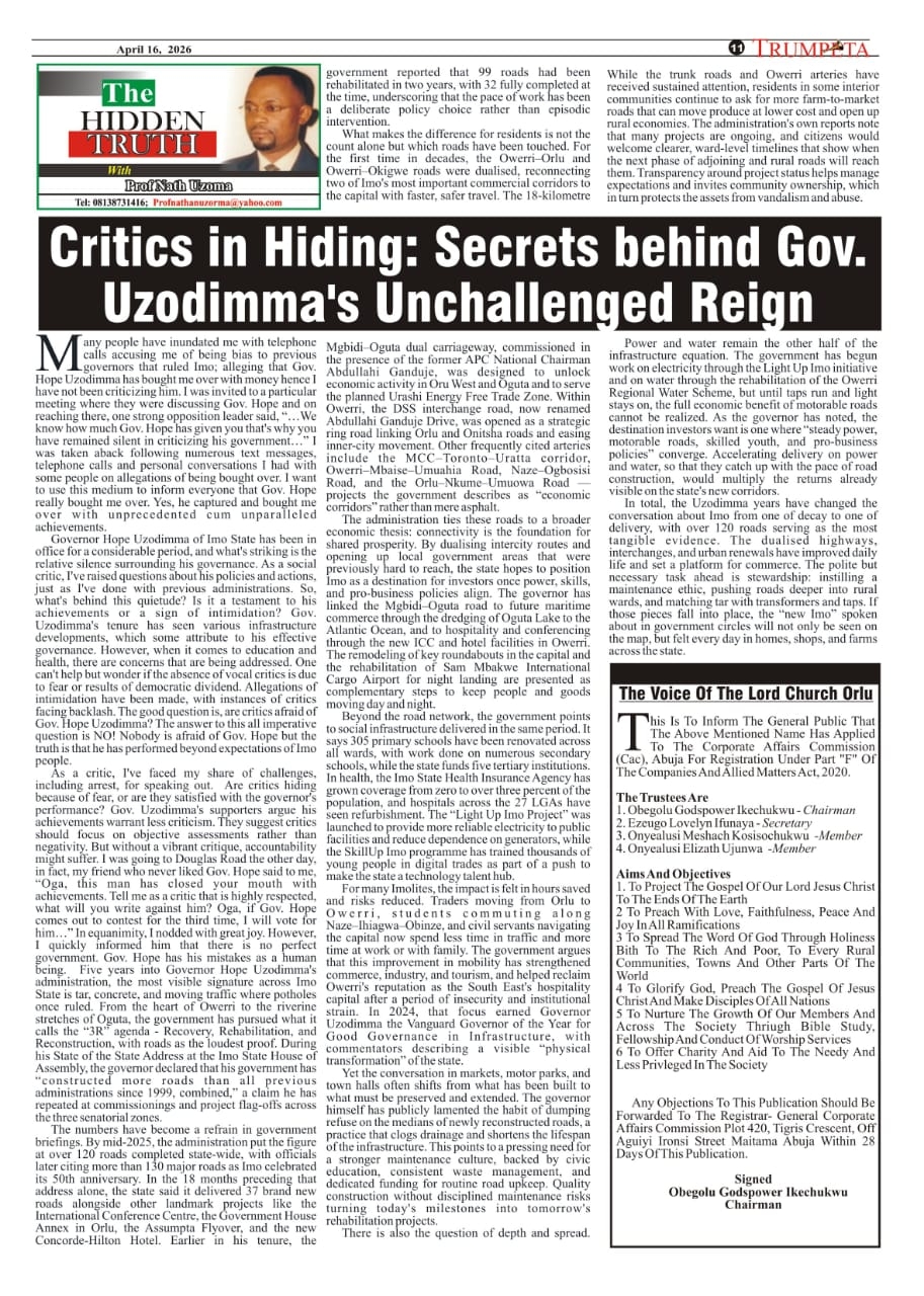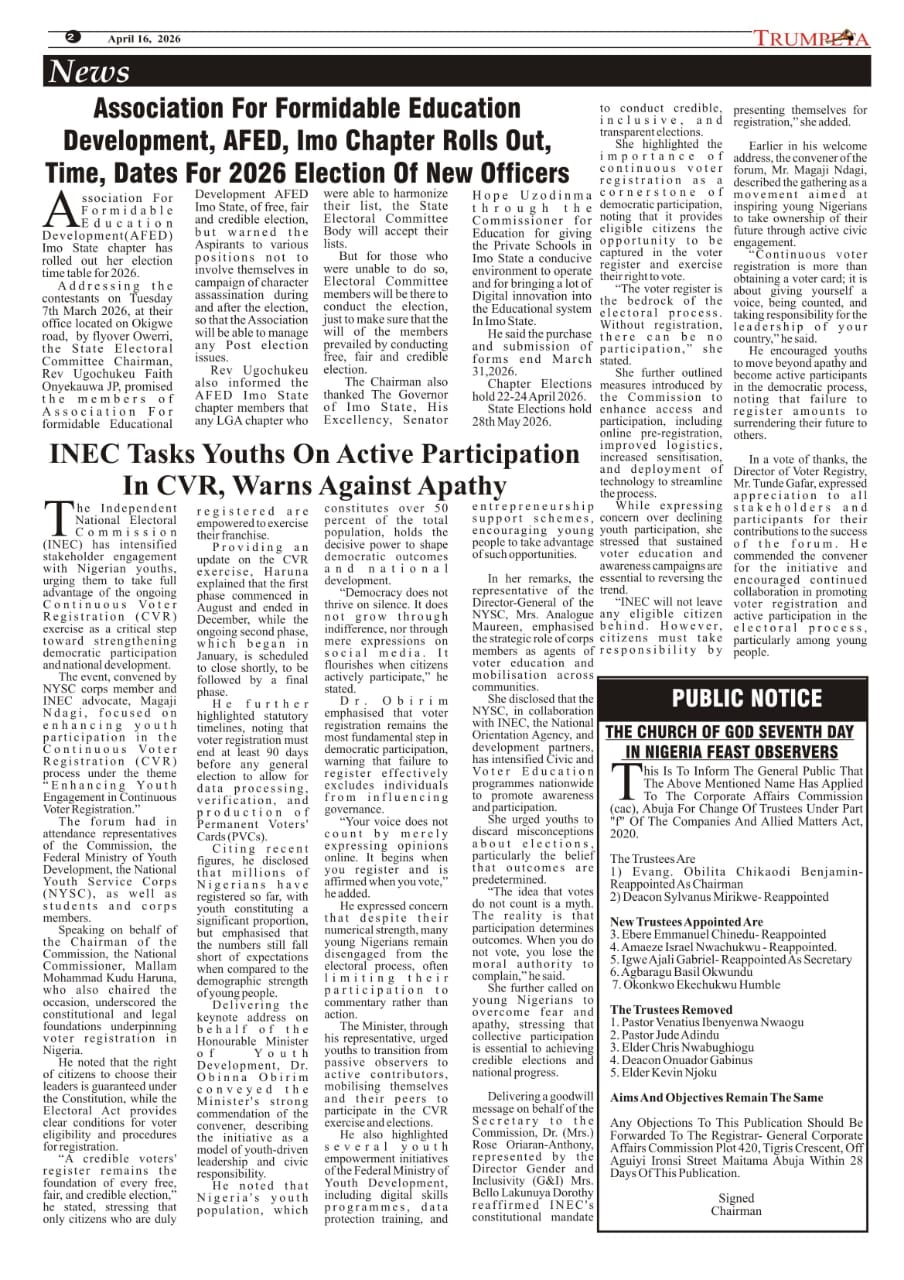 Cover and inside pages of Trumpeta, Thursday, 26th March,2026