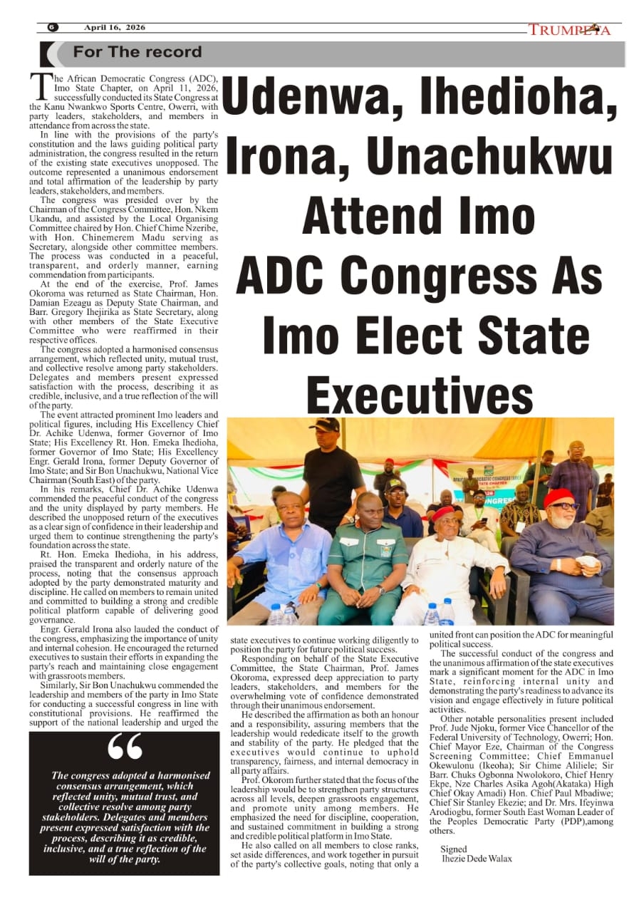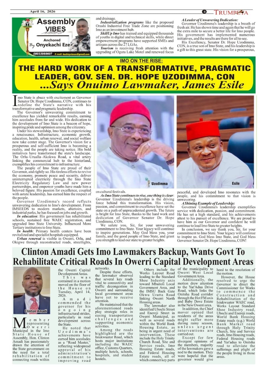 Cover And Inside Pages of Trumpeta,Friday March 13th,2026