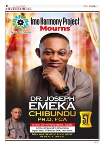 • Imo Harmony Project Mourns Dr Emeka Joseph Chibubdu