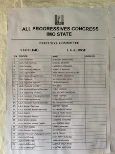 • Full List of Imo State APC Chapter Exco Emerges, As LGA Party Exco Lists Come up