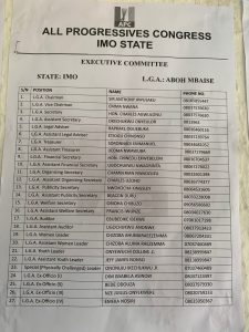 • Full List of Imo State APC Chapter Exco Emerges, As LGA Party Exco Lists Come up