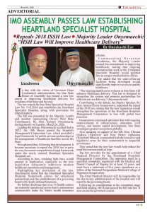 • Imo Assembly Passes Law Establishing Heartland Specialist Hospital ..Repeals 2018 ISSH Law …Majority Leader Onyemaechi: “HSH Law Will Improve Healthcare Delivery”