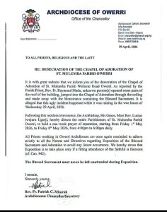 SAVE_20260430_151340 Post navigation Previous Owerri Catholic Community Goes Into 1-Week Prayer Over Desecration Of Adoration Chapel, Stealing of Blessed Sacrament By Suspected Thiefs