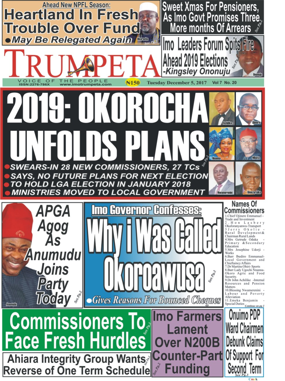 Popular Side/Arabanko Trumpeta; Today’s Headlines 5th Dec. 2017 By Imo Trumpeta - December 4, 2017 Share on Facebook Tweet on Twitter