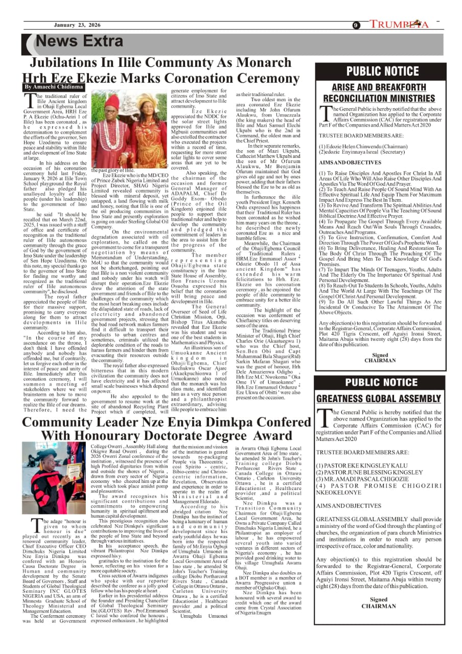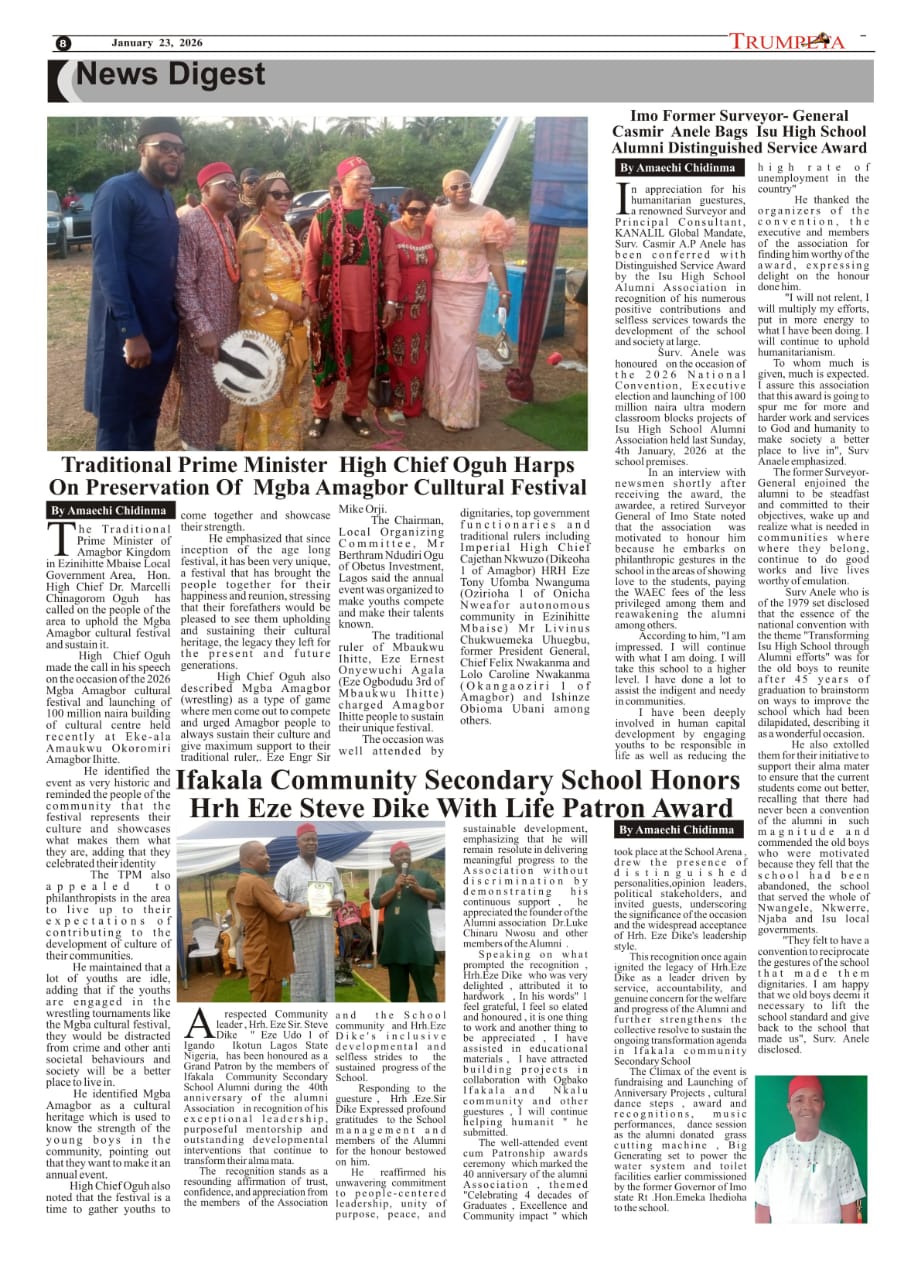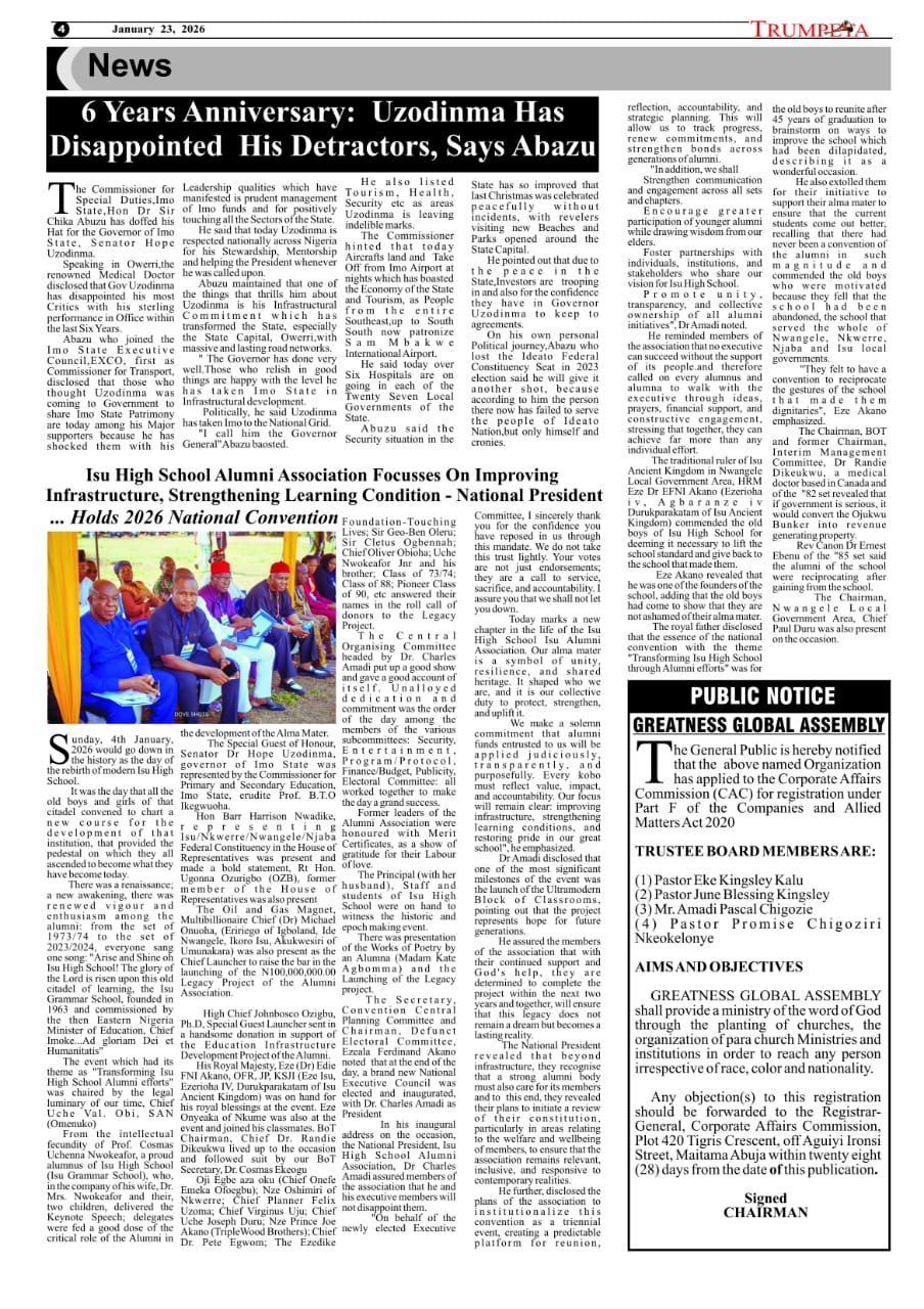 Cover and Inside Pages of Trumpeta, Tuesday, January 20th,2026
