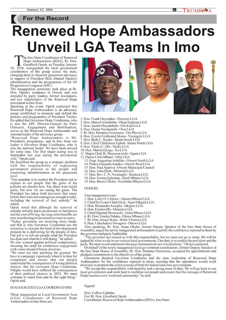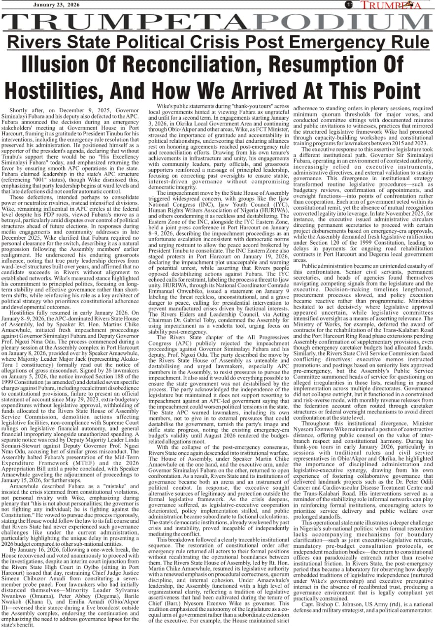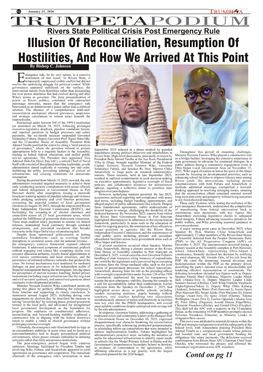 Cover and Inside Pages of Trumpeta, Tuesday, January 20th,2026