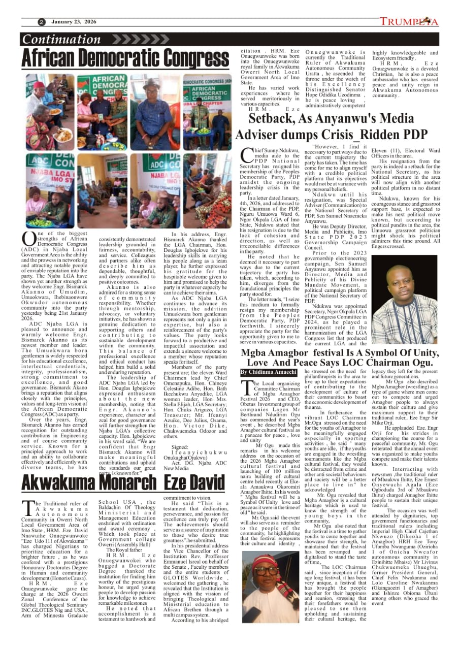 AFRICAN DEMOCRATIC CONGRESS (ADC) NJABA LGA CHAPTER: NJABA ADC YET AGAIN WELCOME ENGR. BISMARCK AKANNO INTO THE PARTY: