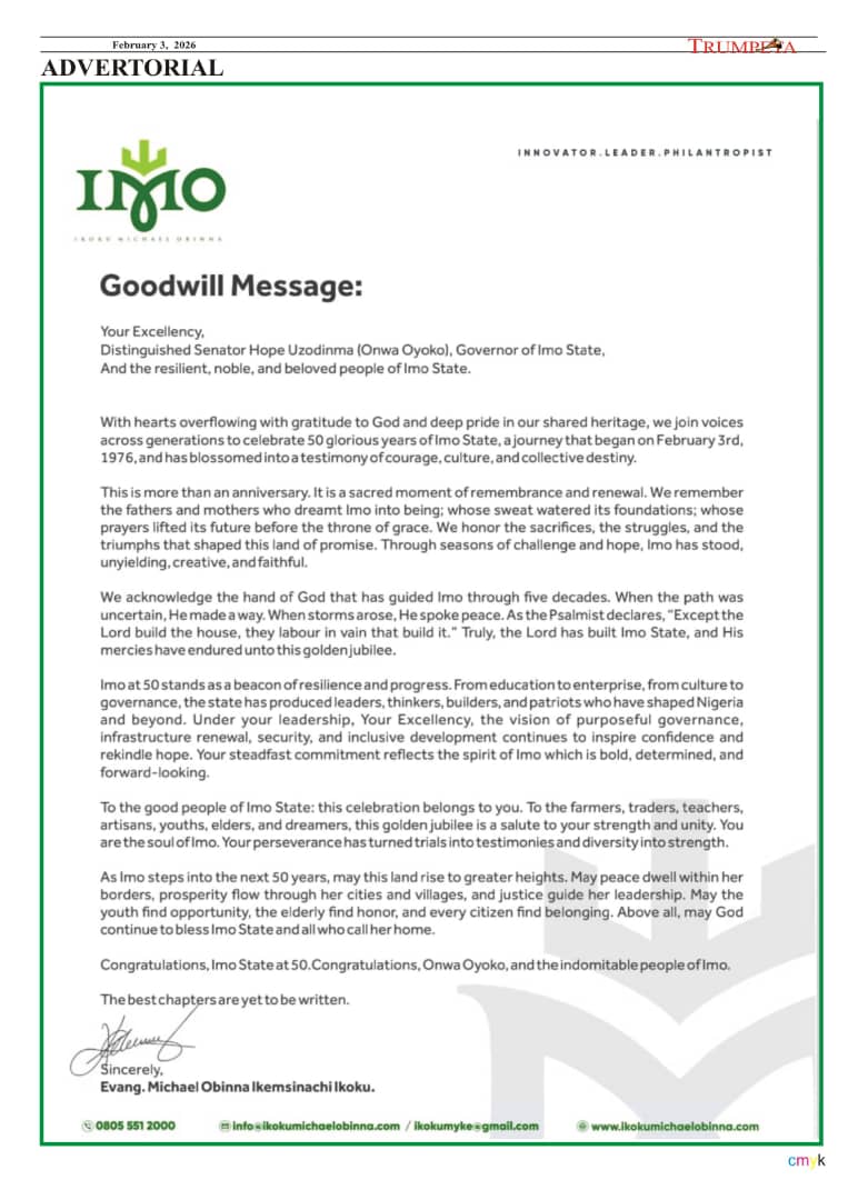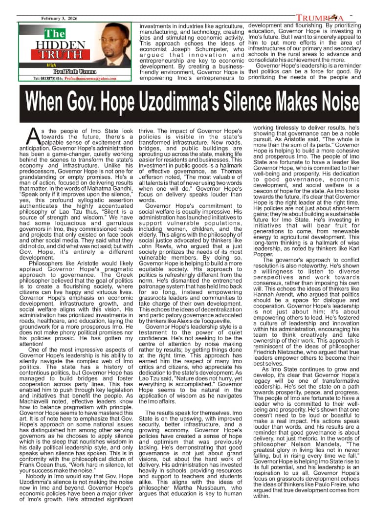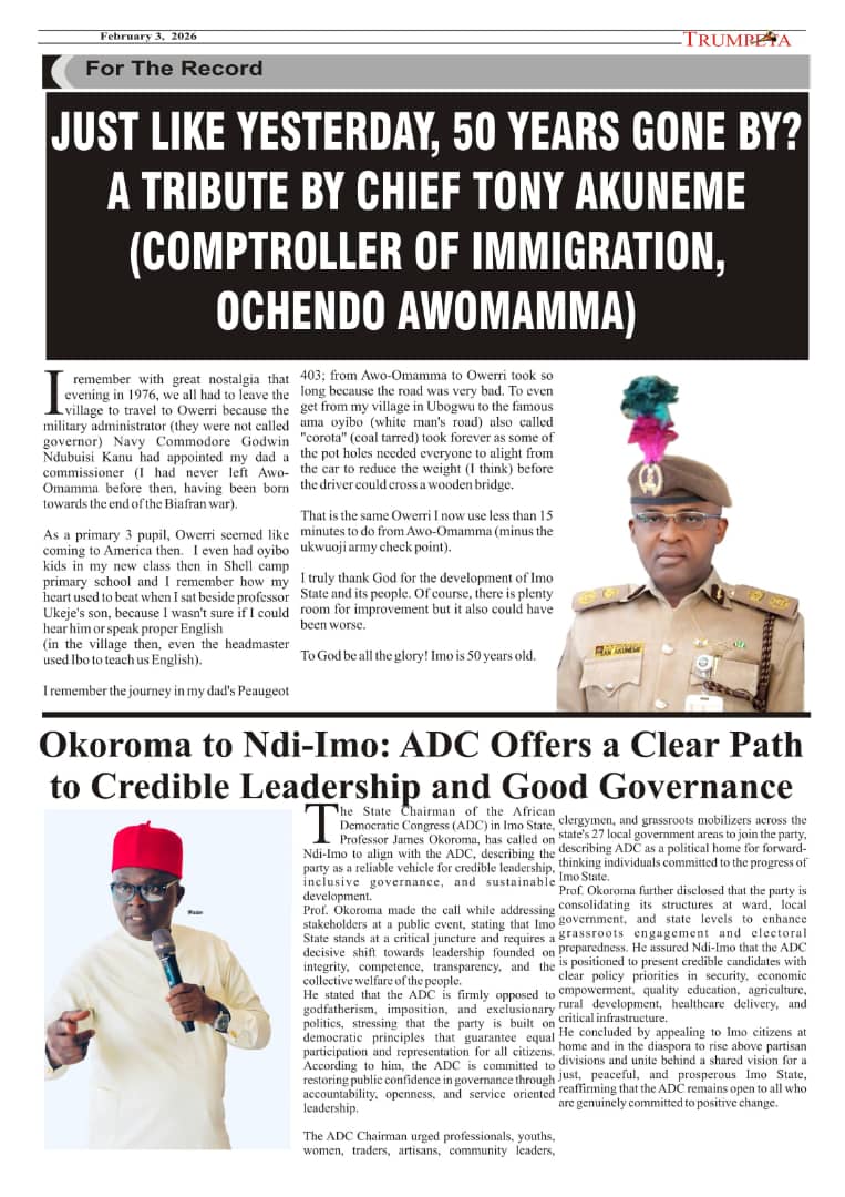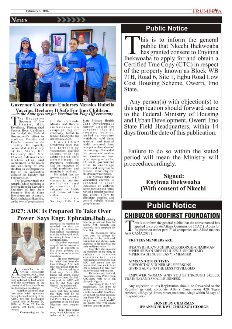 Cover and Inside Pages of Trumpeta, Friday, 30th January, 2026