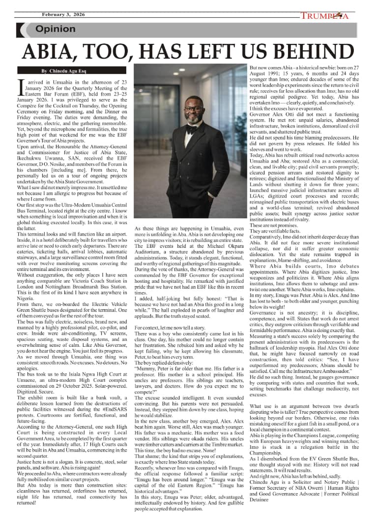 ABIA, TOO, HAS LEFT US BEHIND By Chinedu Agu Esq