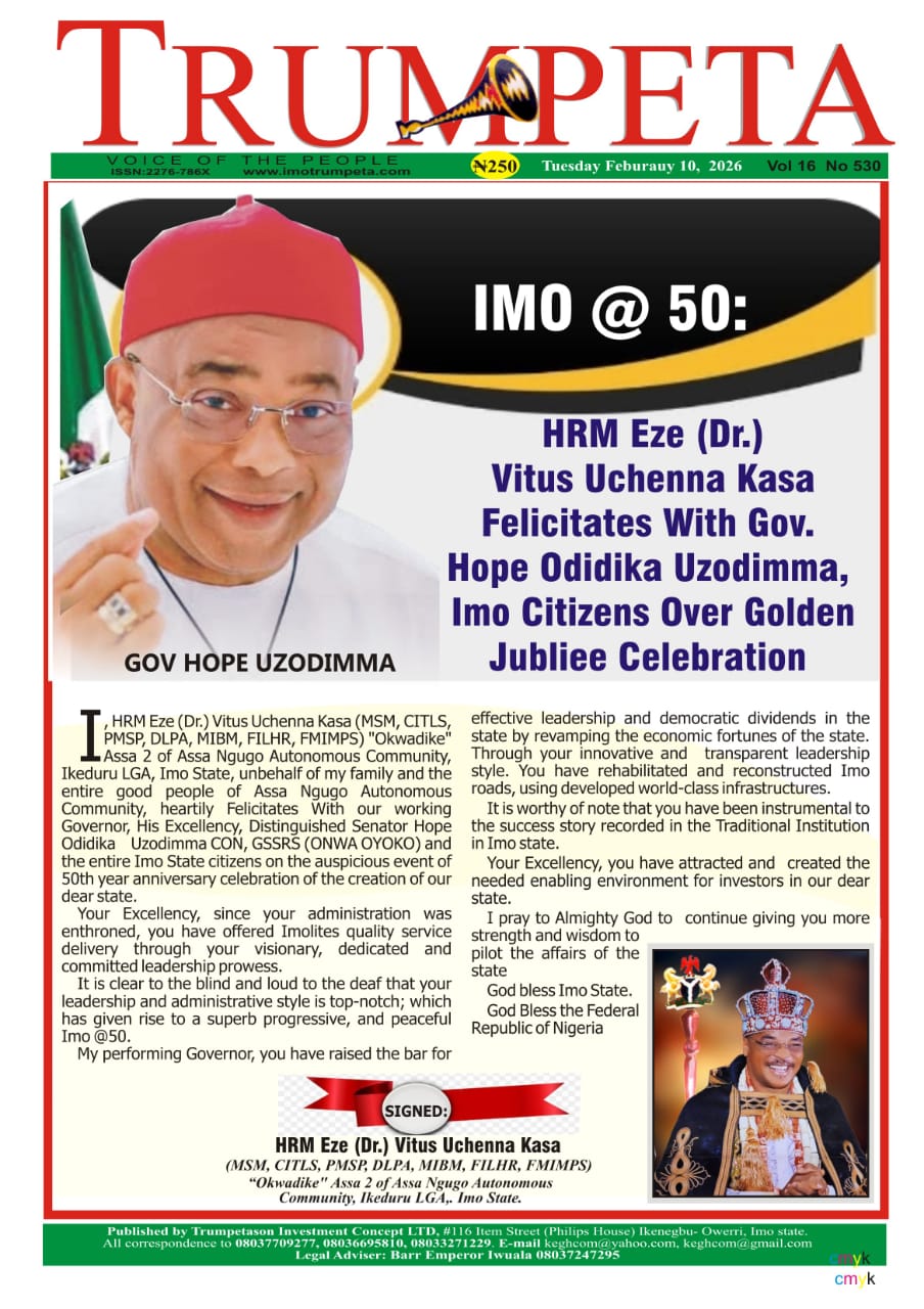 Imo at 50: Ihekire Commends Uzodimma’s Strides, Calls for Better Public Engagement and Equity.