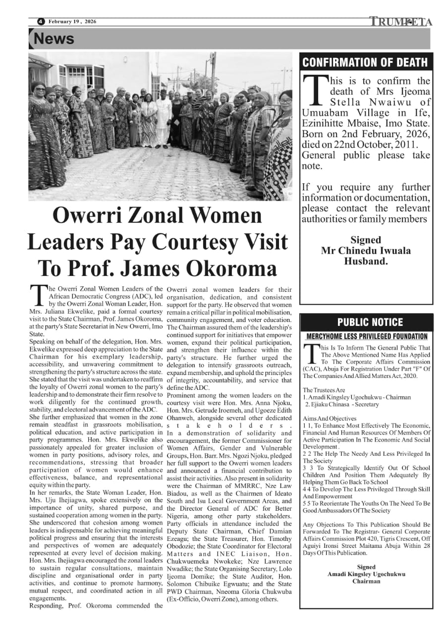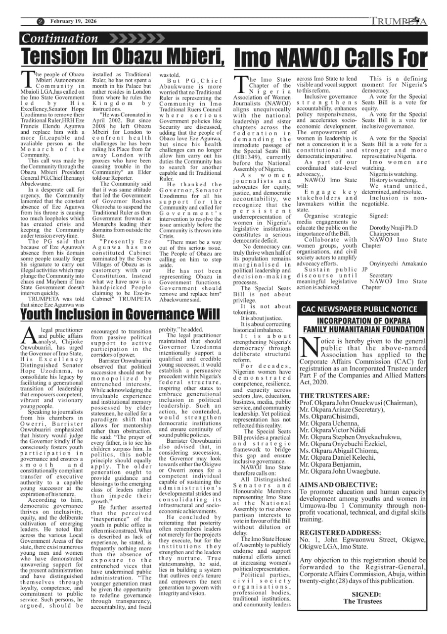 Cover and Inside Pages of Trumpeta, Tuesday, February 17th, 2026