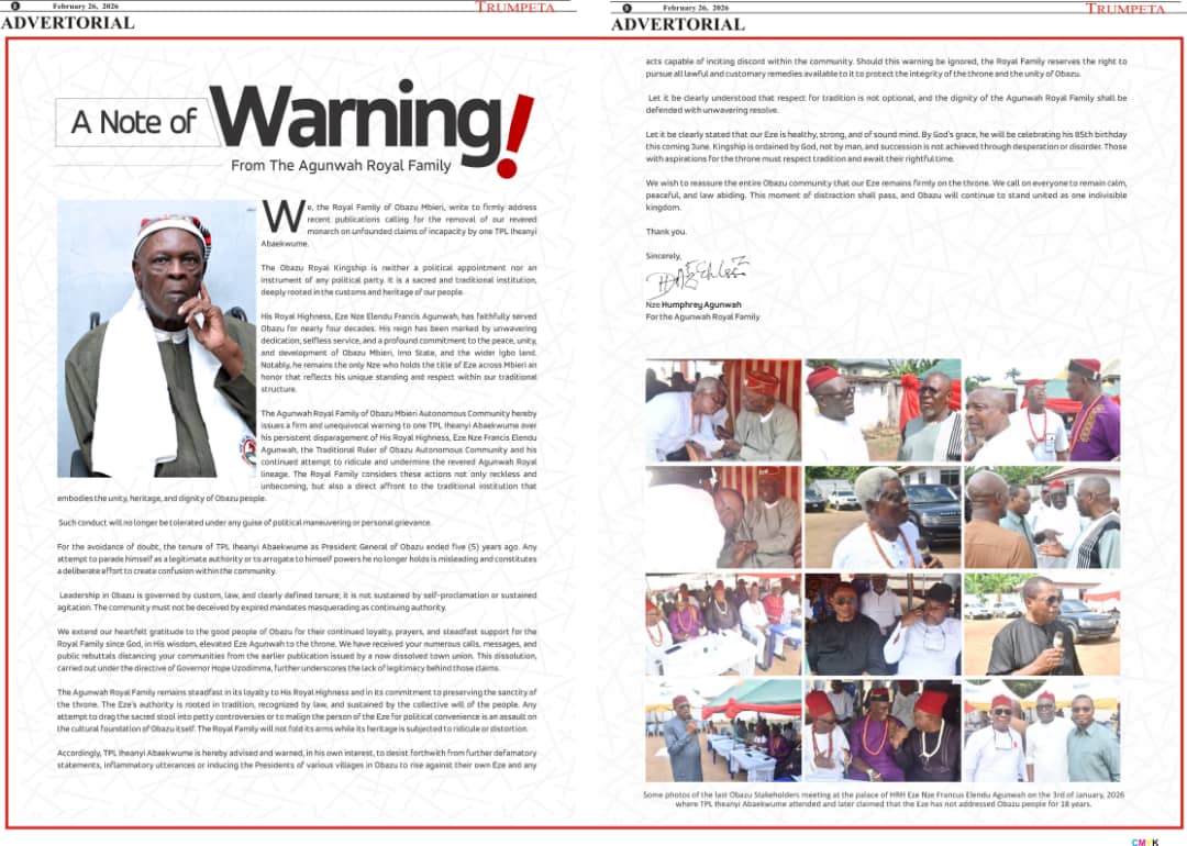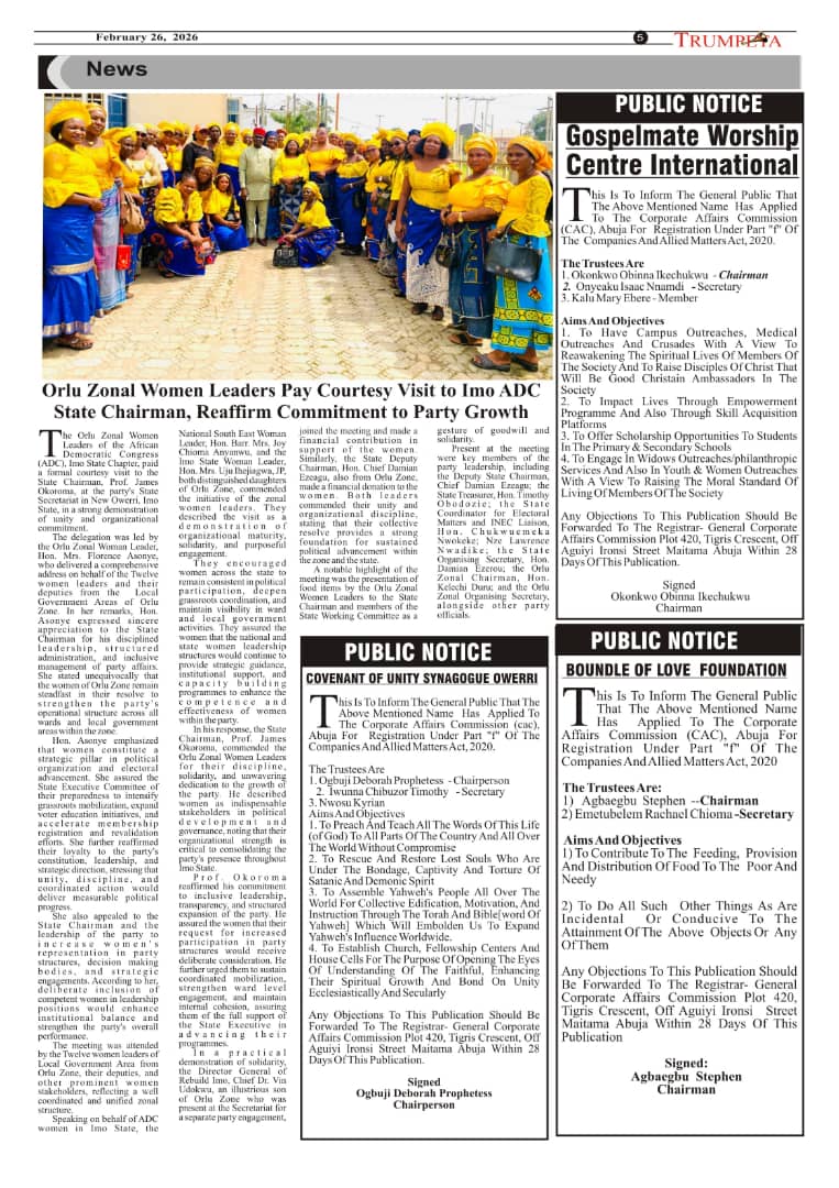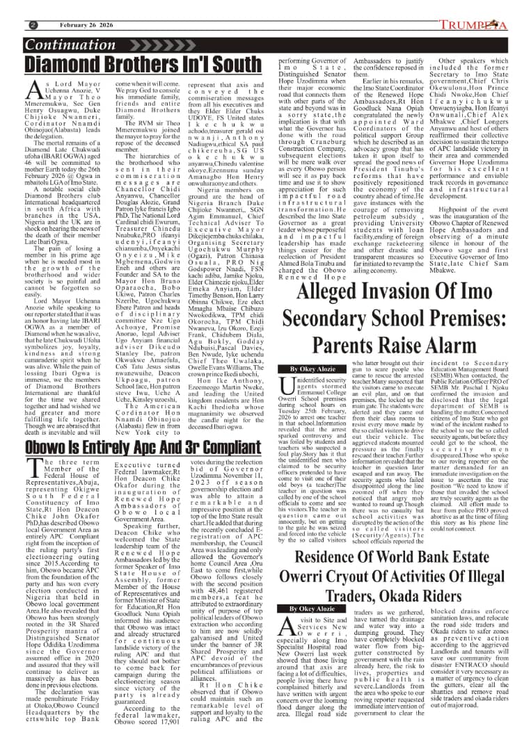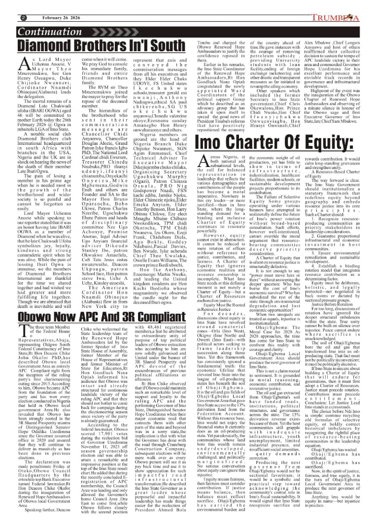 Cover and Inside Pages of Trumpeta, Tuesday,24th February 2026