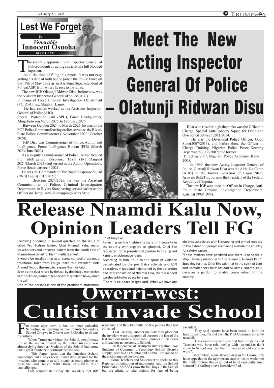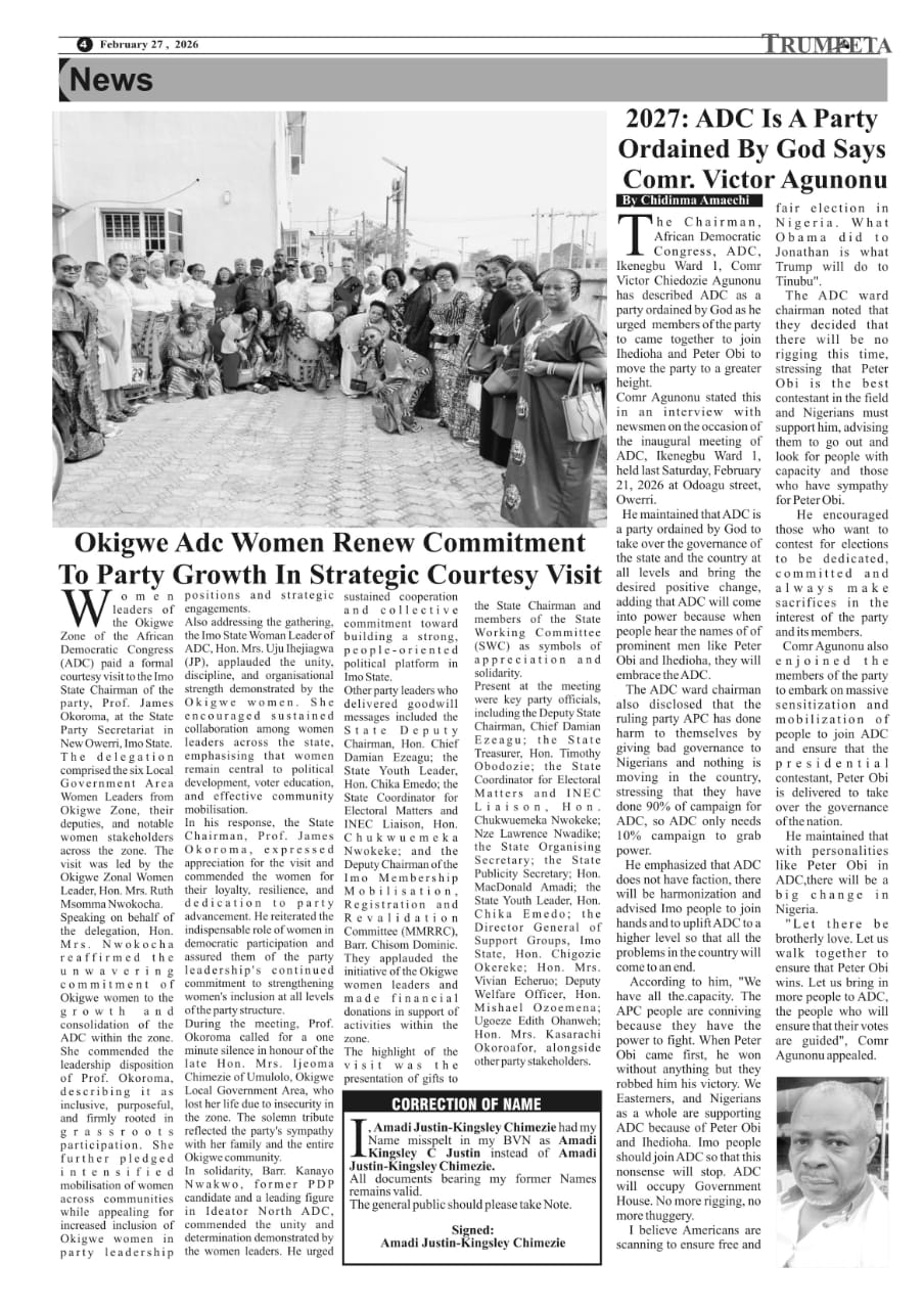 Cover and Inside Pages of Trumpeta, Thursday, 26th February, 2026