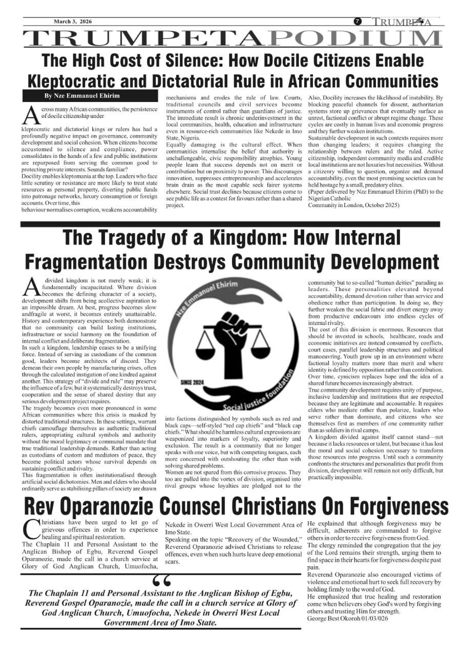 Cover and Inside Pages of Trumpeta, Thursday, 26th February, 2026