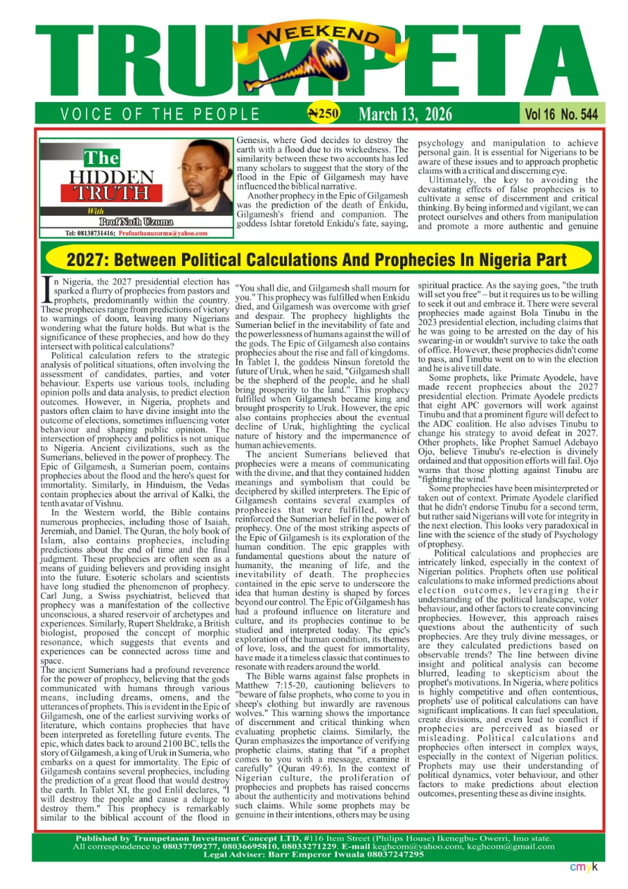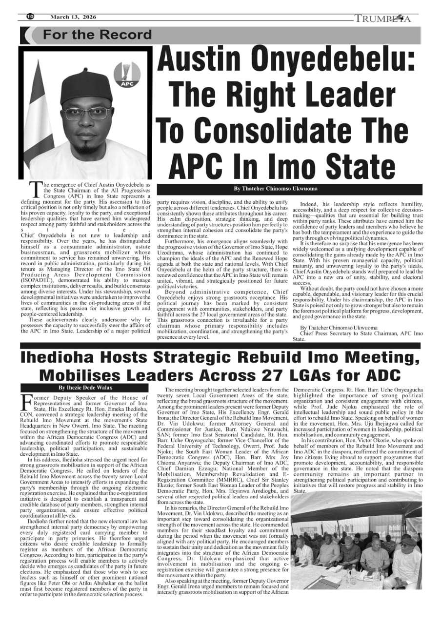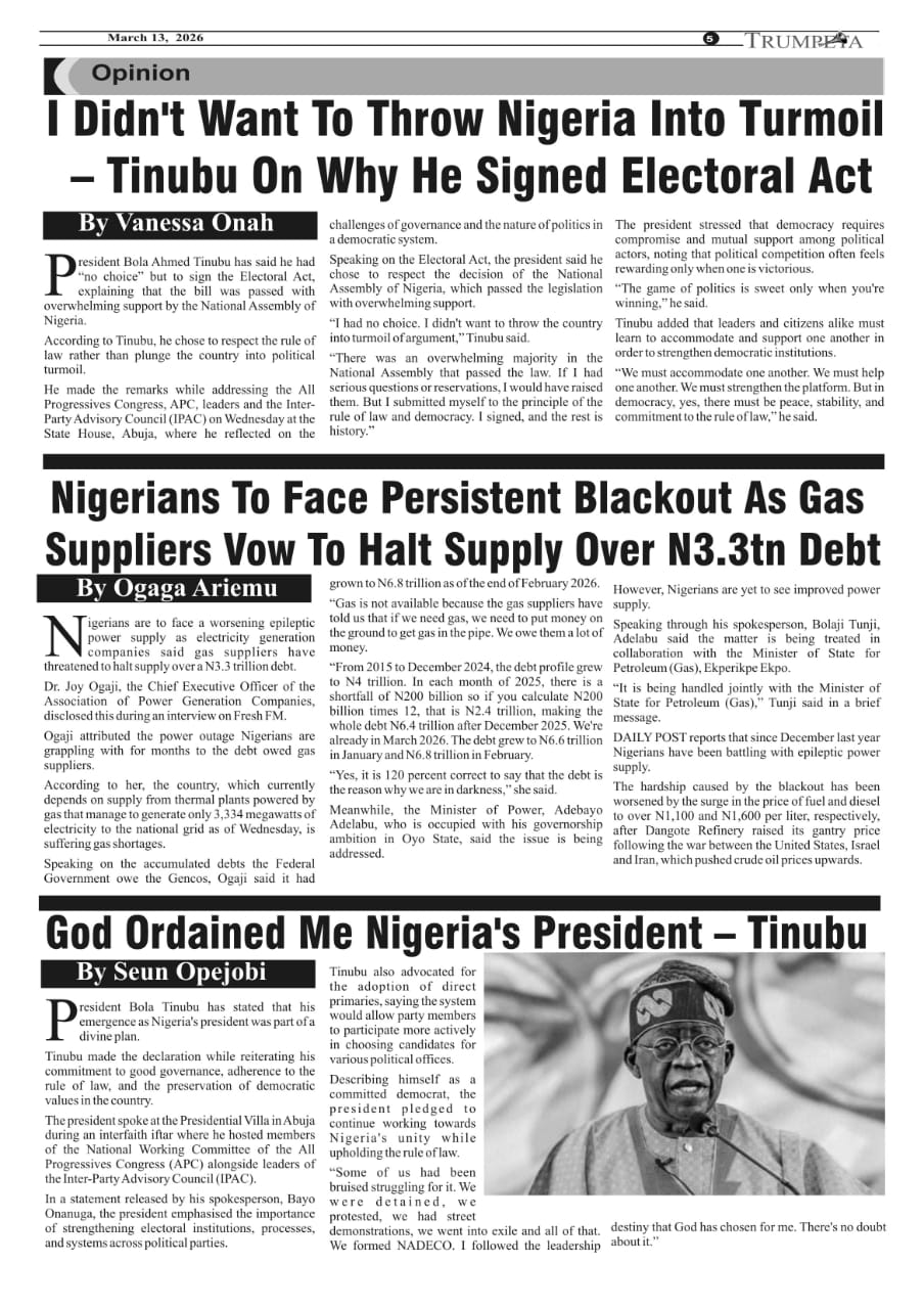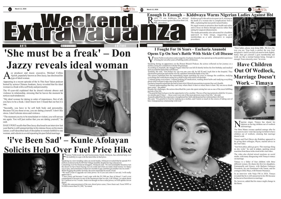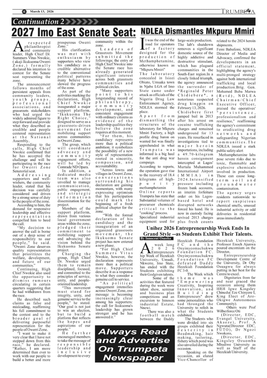 Cover And Inside Pages of Trumpeta, Thursday 12th March 2026
