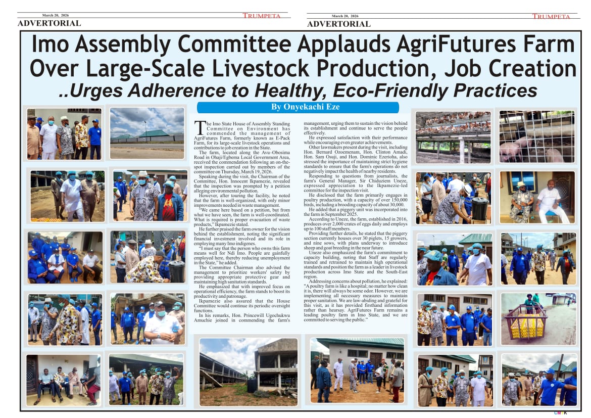 Imo Assembly Committee Applauds AgriFutures Farm Over Large-Scale Livestock Production, Job Creation ..Urges Adherence to Healthy, Eco-Friendly Practices