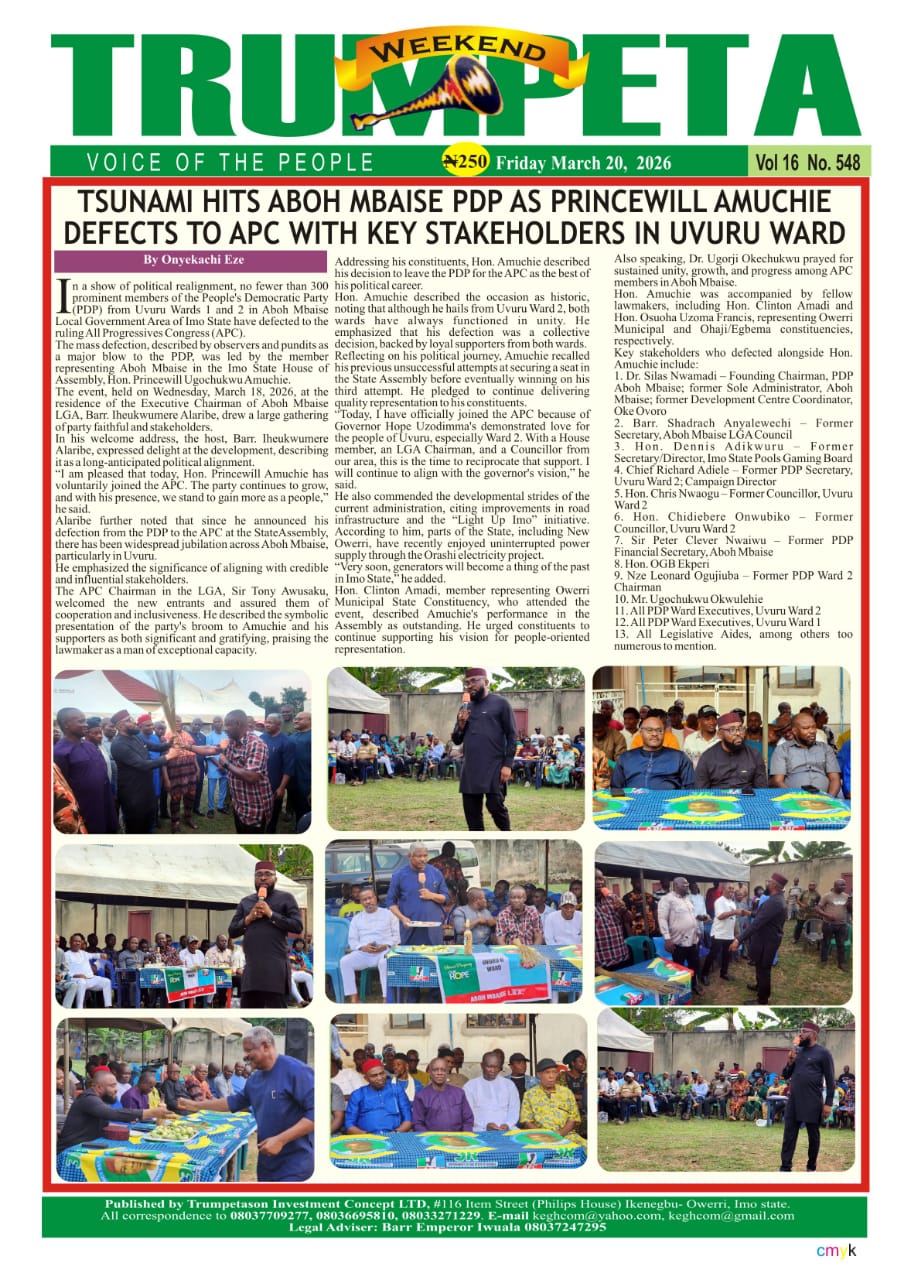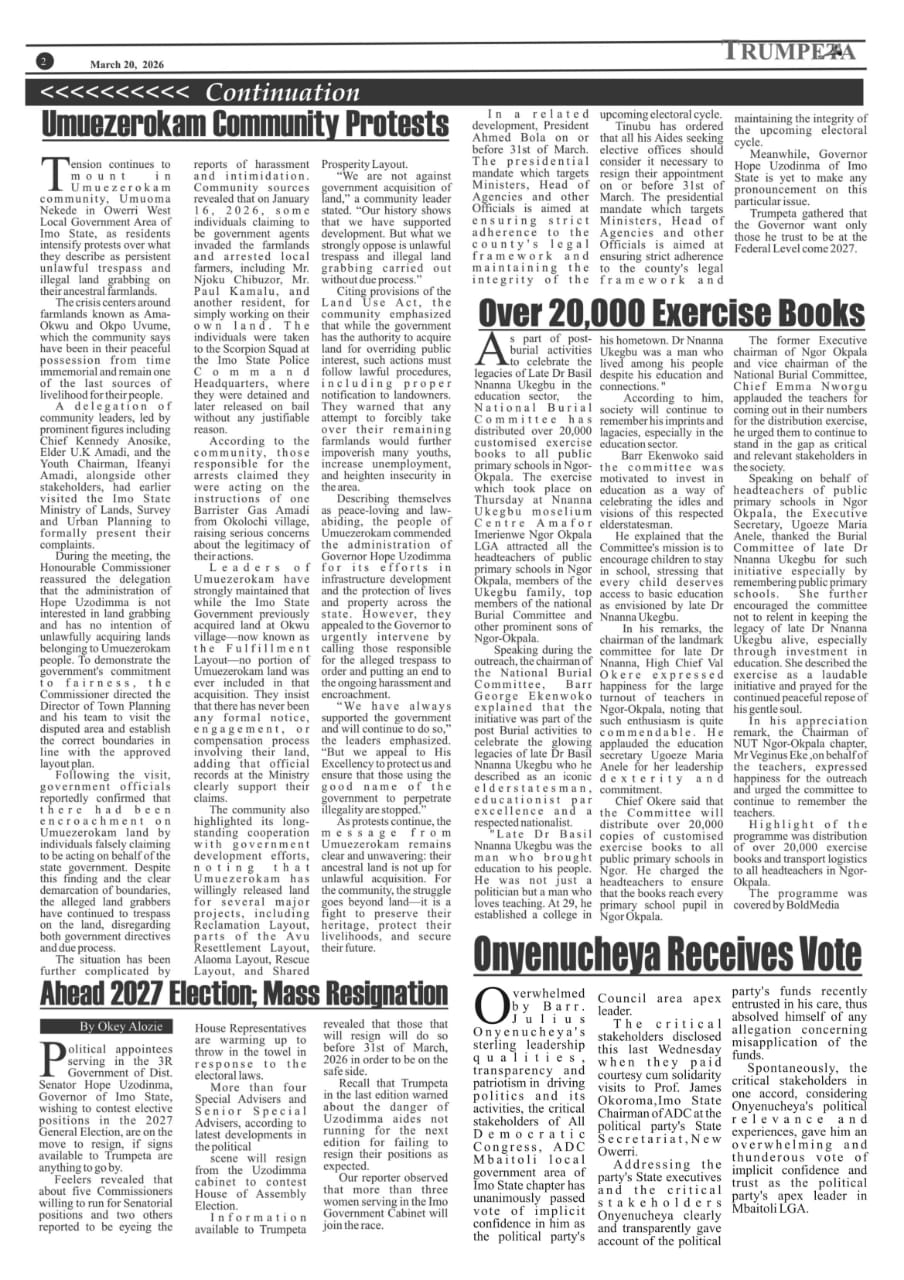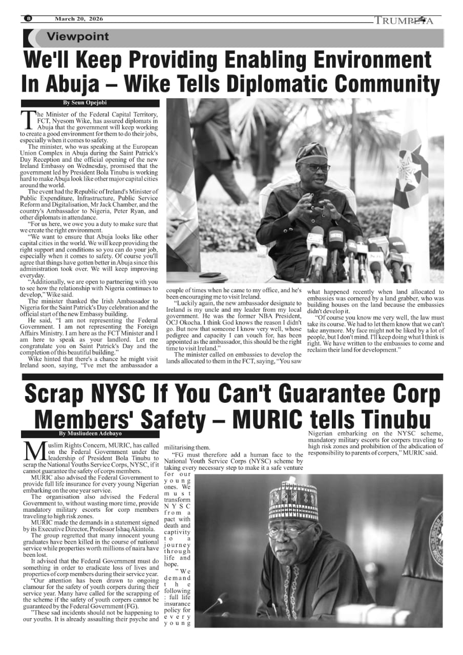 Cover And Inside Pages of Trumpeta, Thursday, Thursday 19th March, 2026
