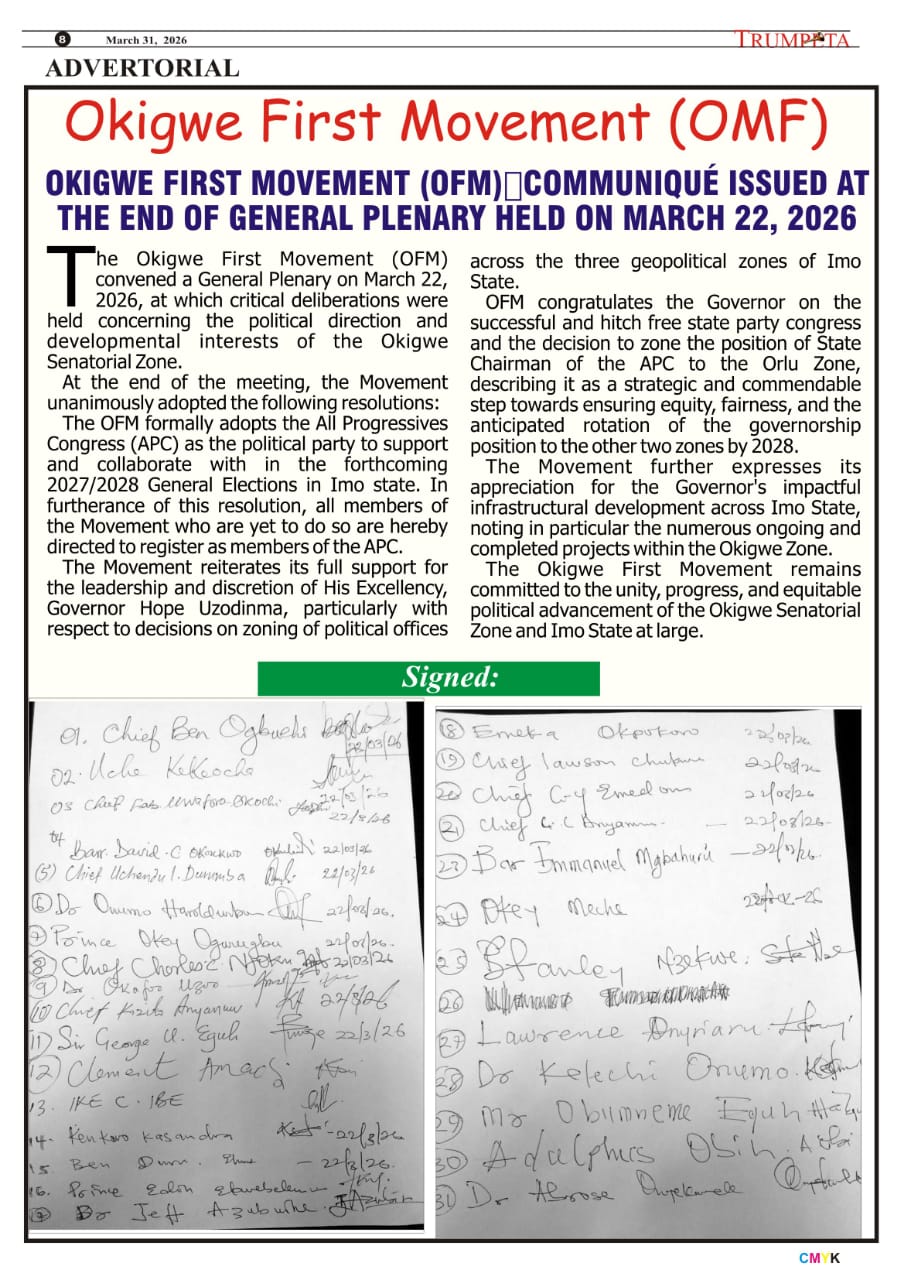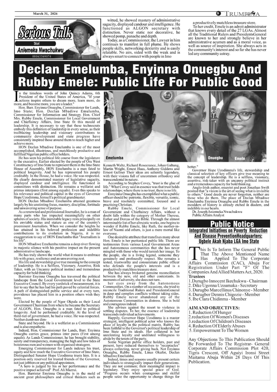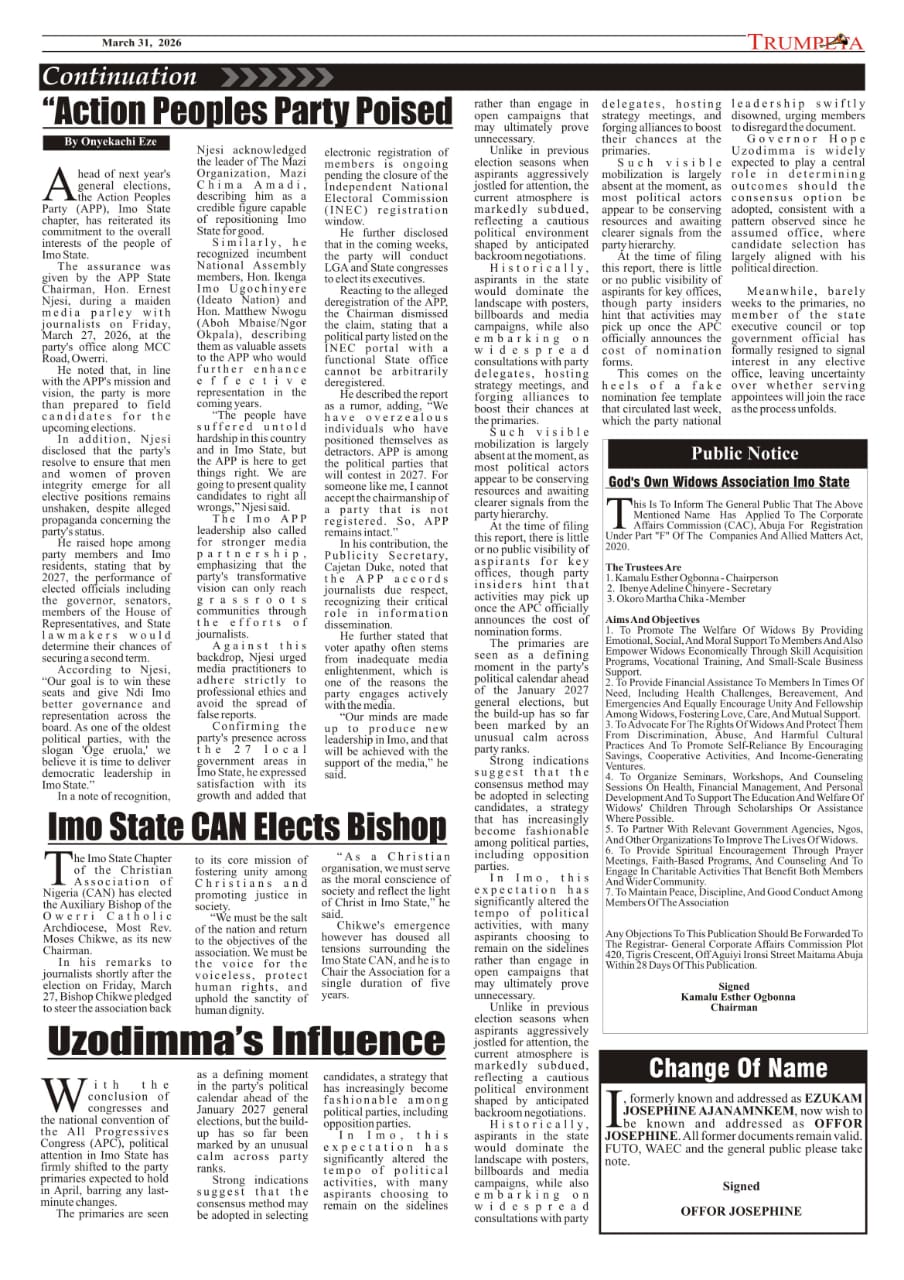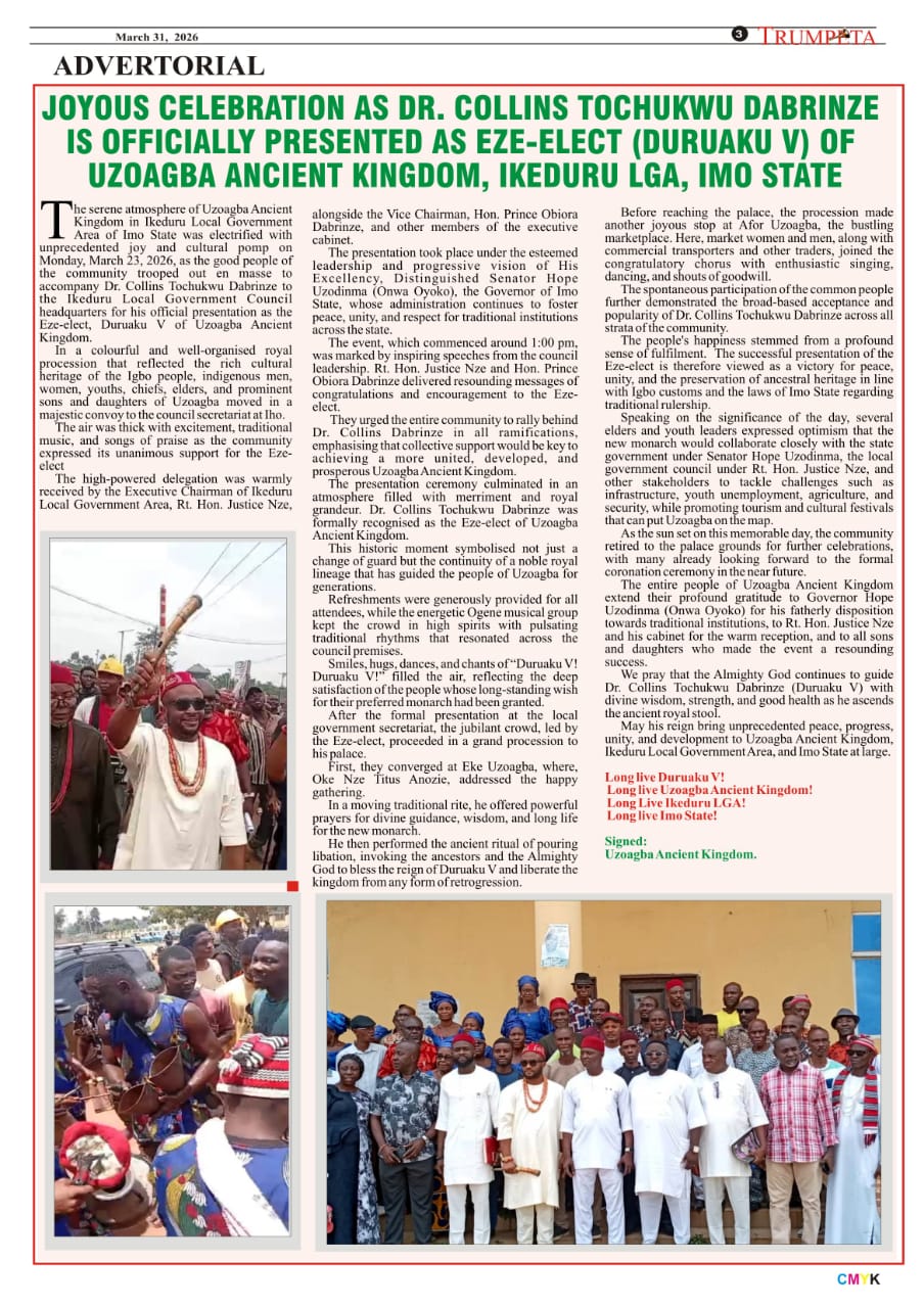 Cover And Inside Pages of Trumpeta, Friday 27th March,2026