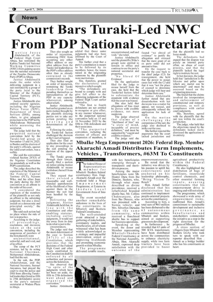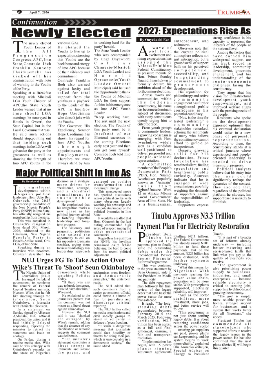 Cover And Inside Pages of Trumpeta, Friday 3rd April, 2026